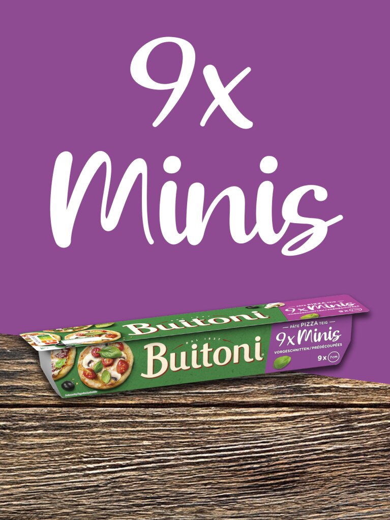 Diese Mini-Pizzateige sind perfekt für einen Aperitif und zum Teilen mit Familie und Freunden! Mit unseren Buitoni Mini-Pizzateigen kann jeder seiner Fantasie freien Lauf lassen und seine eigene Mini-Pizza nach seinem Geschmack kreieren. Ob Sie nun ein Fan der klassischen Margherita, einer Pizza mit vier Käsesorten oder einer gewagteren Kreation sind - alles ist möglich!