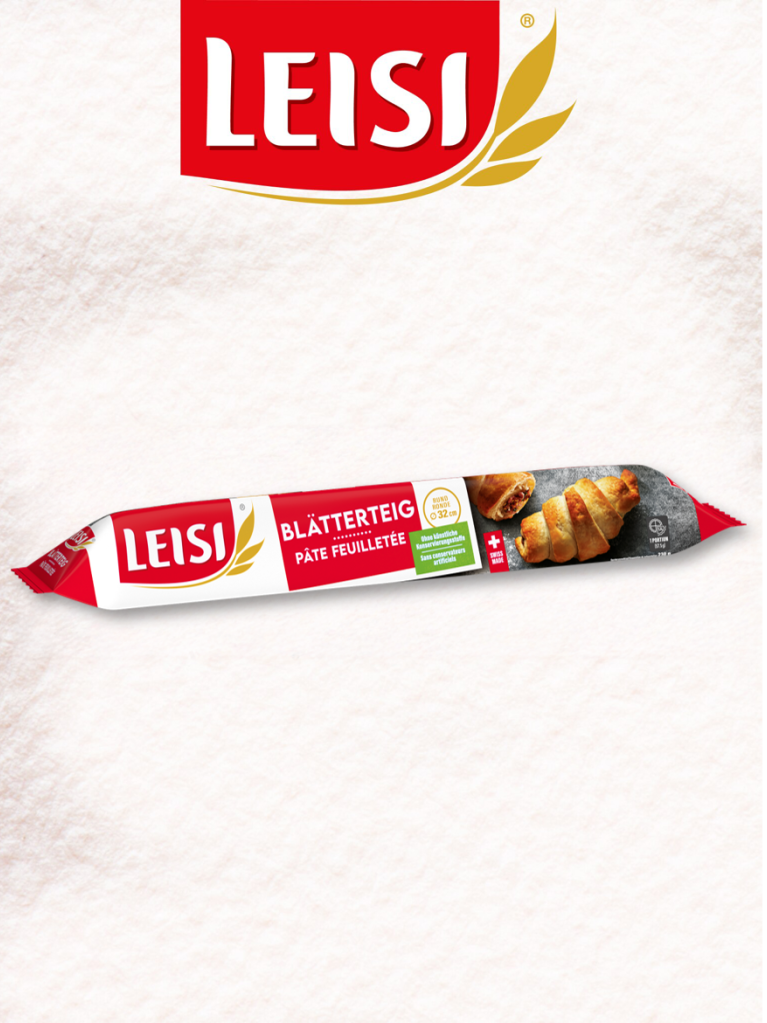 Découvrez la pâte feuilletée LEISI – une pâte ronde de 230 g, Ø 32 cm, certifiée vegan, sans conservateurs artificiels et composée de 196 couches légères et croustillantes. Cette pâte feuilletée est idéale pour sublimer vos créations culinaires, qu'elles soient sucrées ou salées.